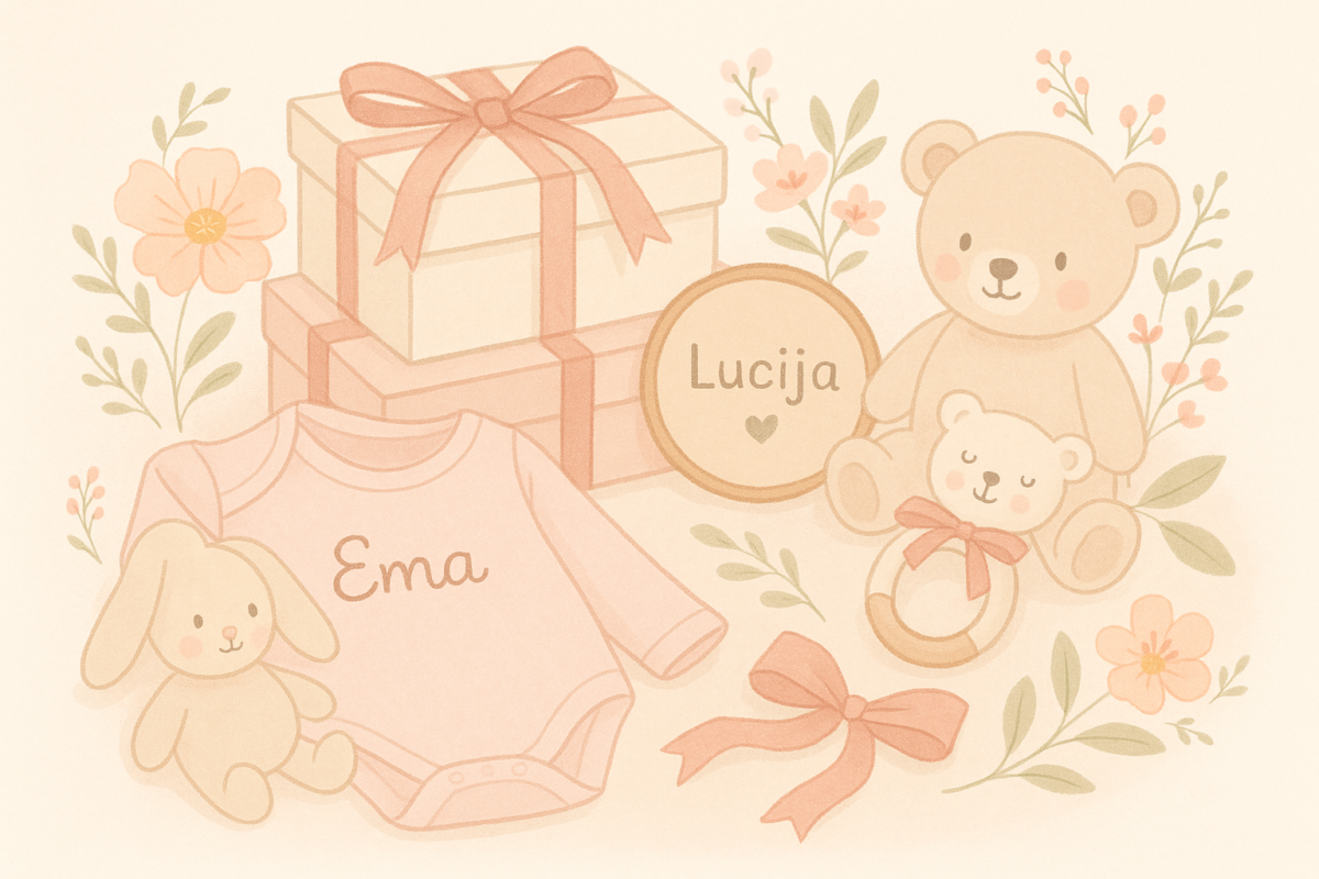 Ponekad se čini da se dom s dolaskom bebe ne mijenja naglo, nego tiho—po rubovima. Na naslonu stolice ostane personalizirana dekica, na polici se smjesti prva narukvica iz rodilišta, a u zraku ostane trag toplog mlijeka i šapat: “tu si”. Ako si u potrazi za načinom da te prve dane oblikuješ s pažnjom, bez žurbe i velikih preuređenja, nudim ti mapu od četiri mala kutka. Svaki je poziv na bliskost i mekoću, a svaki može nježno uključiti personalizirane poklone za bebe i uspomene koje će te pratiti godinama.