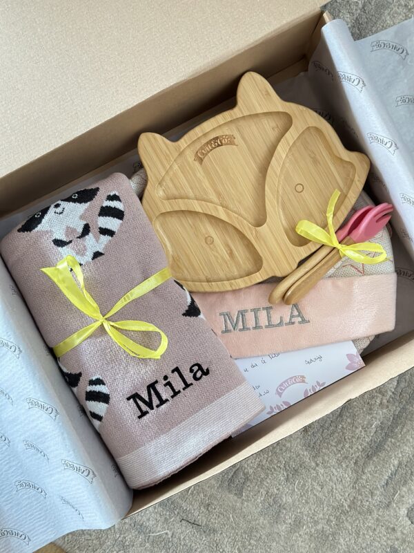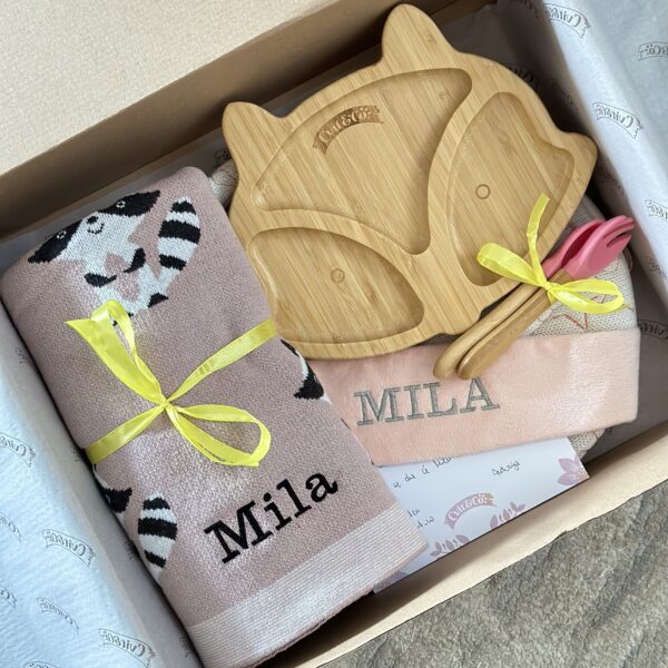 Paket “Prvi zagrljaj Rakuna” donosi ti tri must-have eko komada: bambus tanjur s vakuum podlogom (motiv rakun), premium ruksak Zeko Veliki s mekanim ušima i šarmantnim zeko uzorkom te pamučnu dekicu s veselim rakunima. Savršen baby-shower dar, spreman za uručivanje.