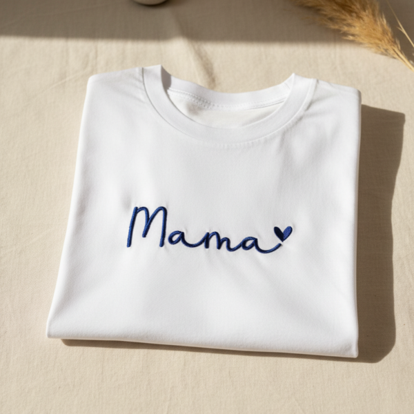 Majica Mama je premium unisex kroja s izdržljivim strojnim vezom. Izrađena od 100% pamuka za udobnost kroz dan.