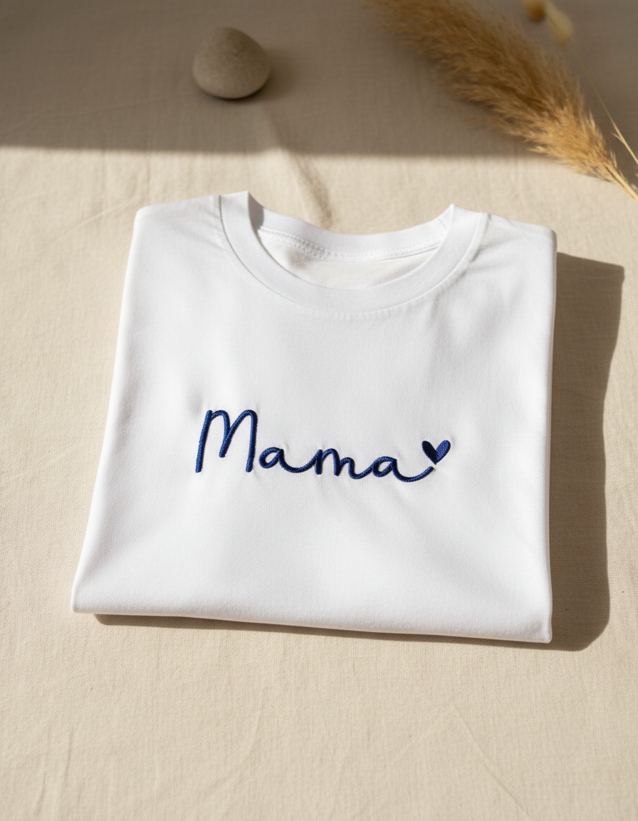 Majica Mama je premium unisex kroja s izdržljivim strojnim vezom. Izrađena od 100% pamuka za udobnost kroz dan.